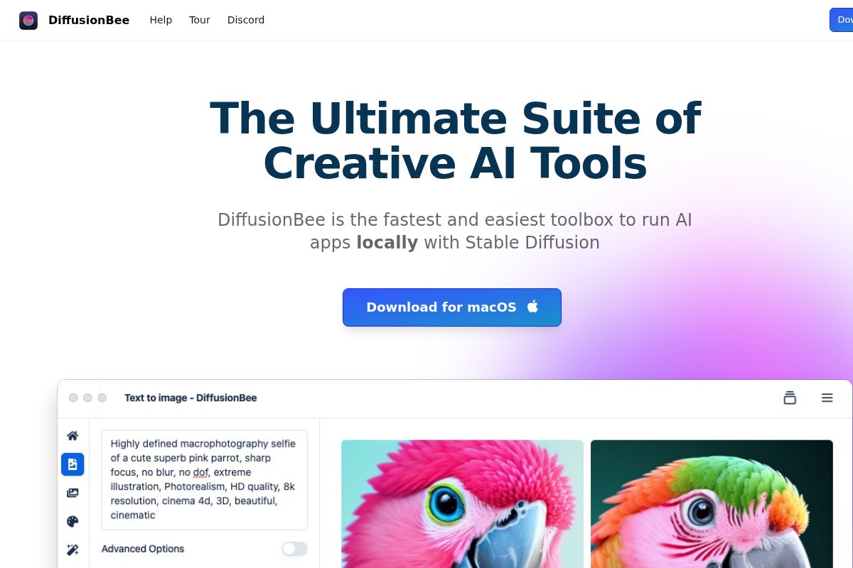 Easiest way to run Stable Diffusion on Mac with one-click install ## About DiffusionBee Easiest way to run Stable Diffusion on Mac with one-click install. DiffusionBee works 100% offline, is open source, is completely free to use, runs on CPU without a dedicated G...