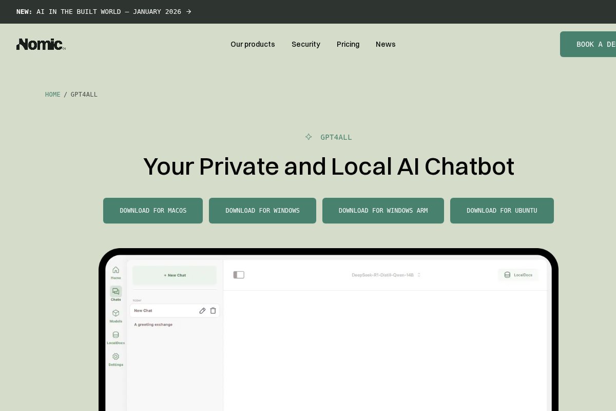 Free-to-use, locally running, privacy-aware chatbot by Nomic AI ## About GPT4All Free-to-use, locally running, privacy-aware chatbot by Nomic AI. GPT4All works 100% offline, is open source, is completely free to use, runs on CPU without a dedicated GPU. ### Pla...