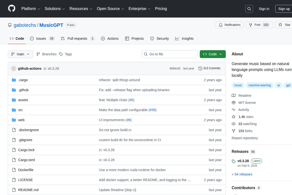 Generate music from text prompts locally - no Python required ## About MusicGPT Generate music from text prompts locally - no Python required. MusicGPT works 100% offline, is open source, is completely free to use, runs on CPU without a dedicated GPU. ### Pla...