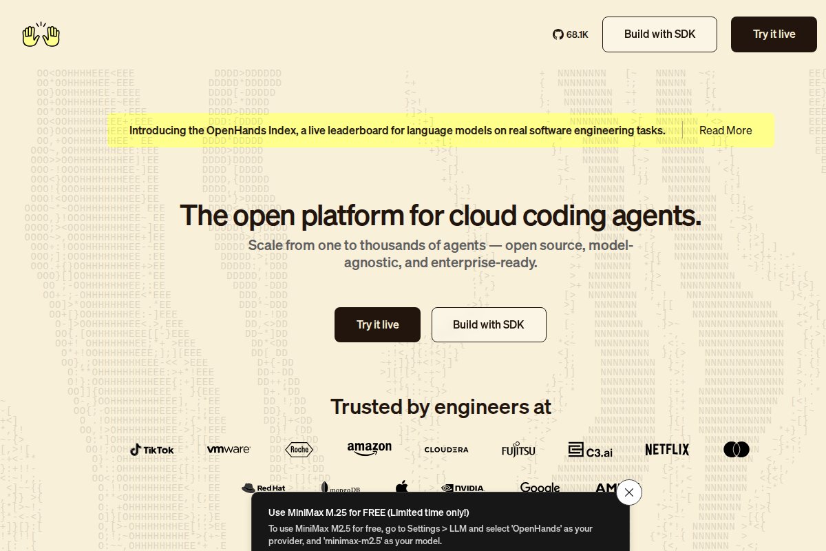 Open-source AI software engineer agent (formerly OpenDevin) ## About OpenHands Open-source AI software engineer agent (formerly OpenDevin). OpenHands works 100% offline, is open source, is completely free to use, runs on CPU without a dedicated GPU. ### Pla...