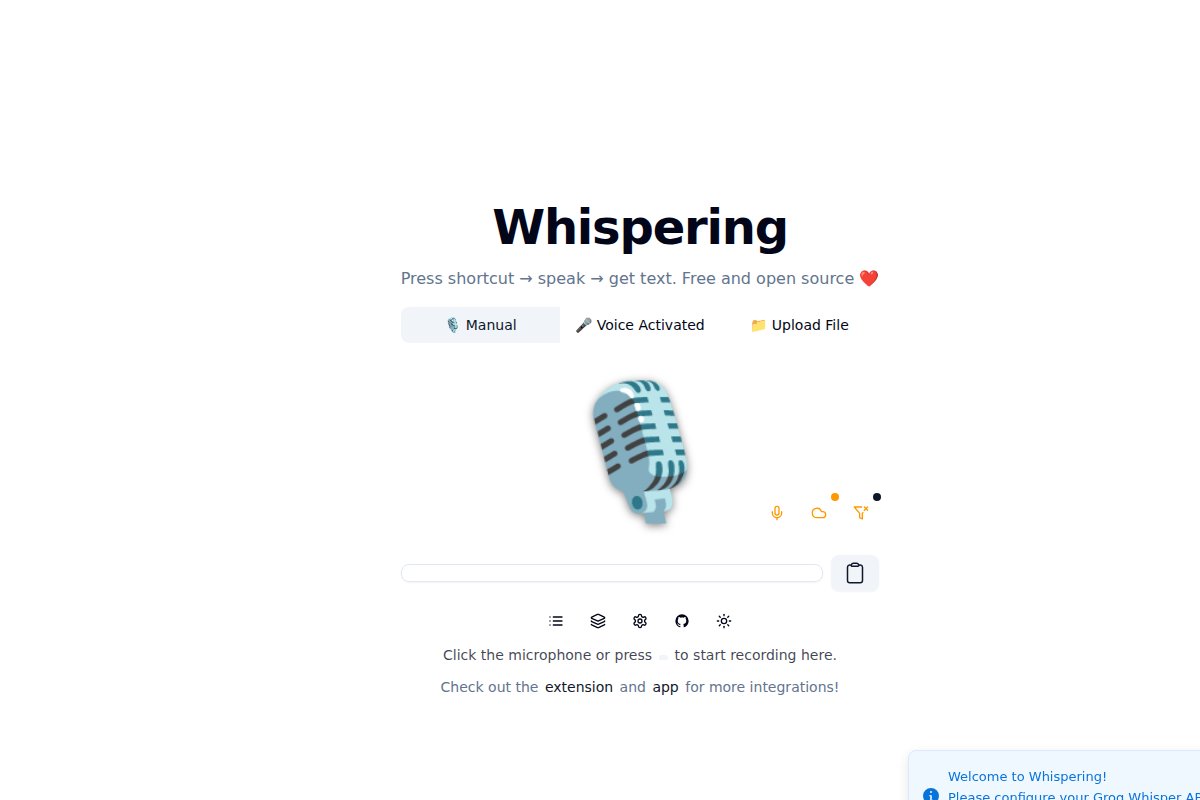 Open-source, local-first dictation - keep your audio on your device ## About Whispering Open-source, local-first dictation - keep your audio on your device. Whispering works 100% offline, is open source, is completely free to use, runs on CPU without a dedicated GPU...