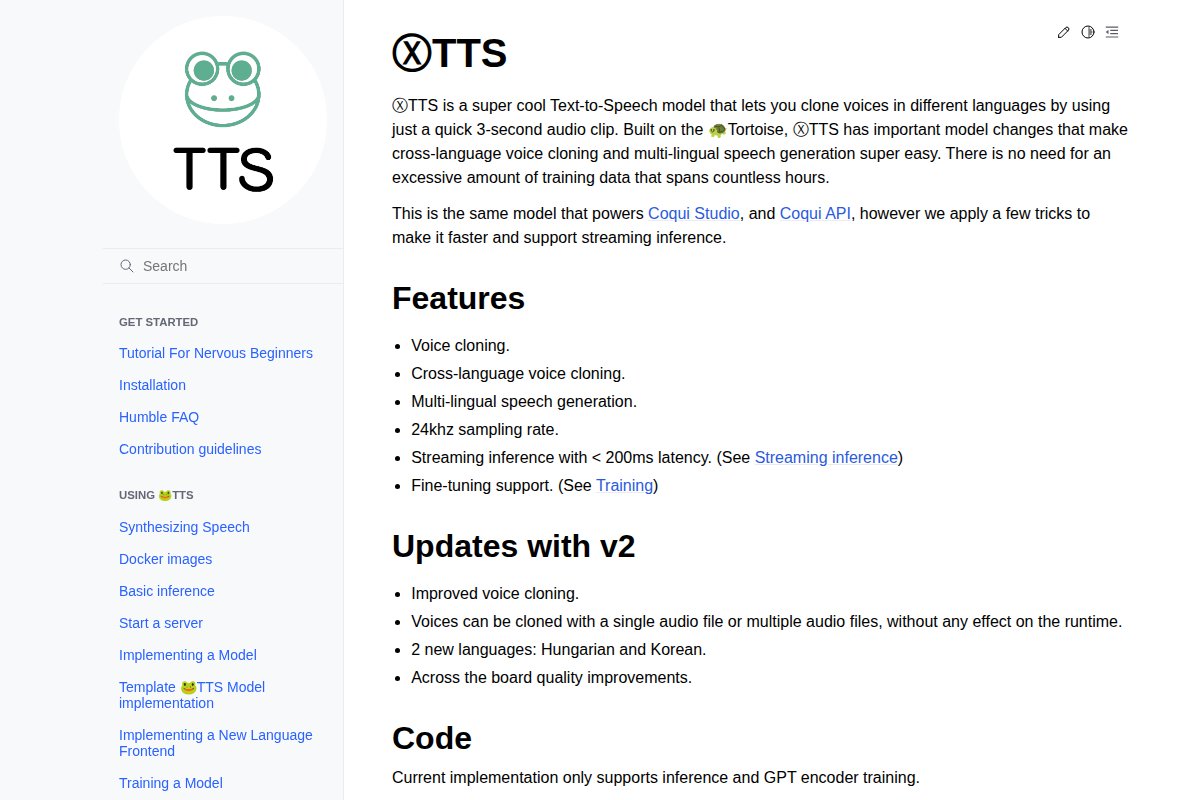 Voice cloning from 6 seconds - supports 17 languages ## About XTTS v2 Voice cloning from 6 seconds - supports 17 languages. XTTS v2 works 100% offline, is open source, is completely free to use, runs on CPU without a dedicated GPU. ### Platform Suppo...